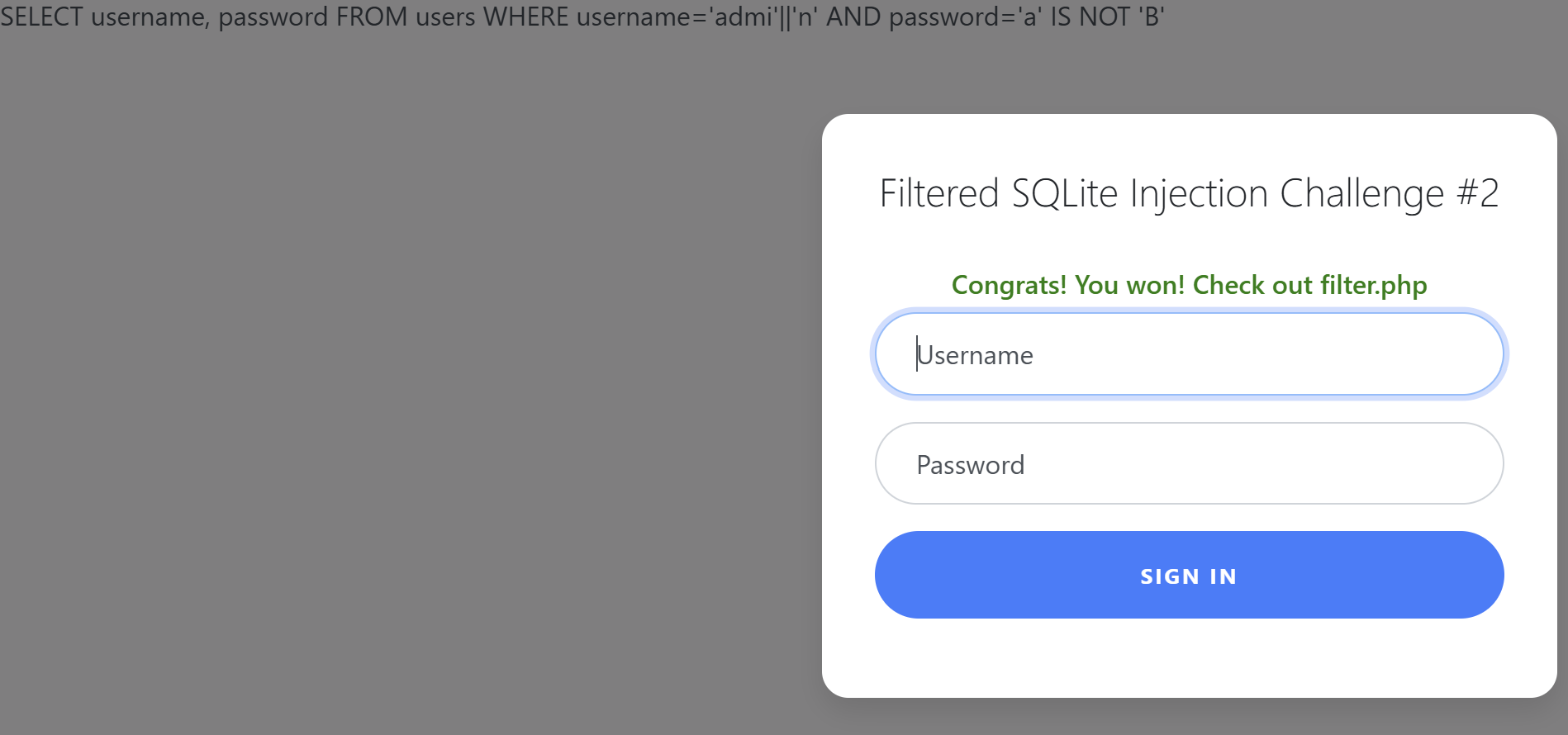 password : 1' IS NOT '2